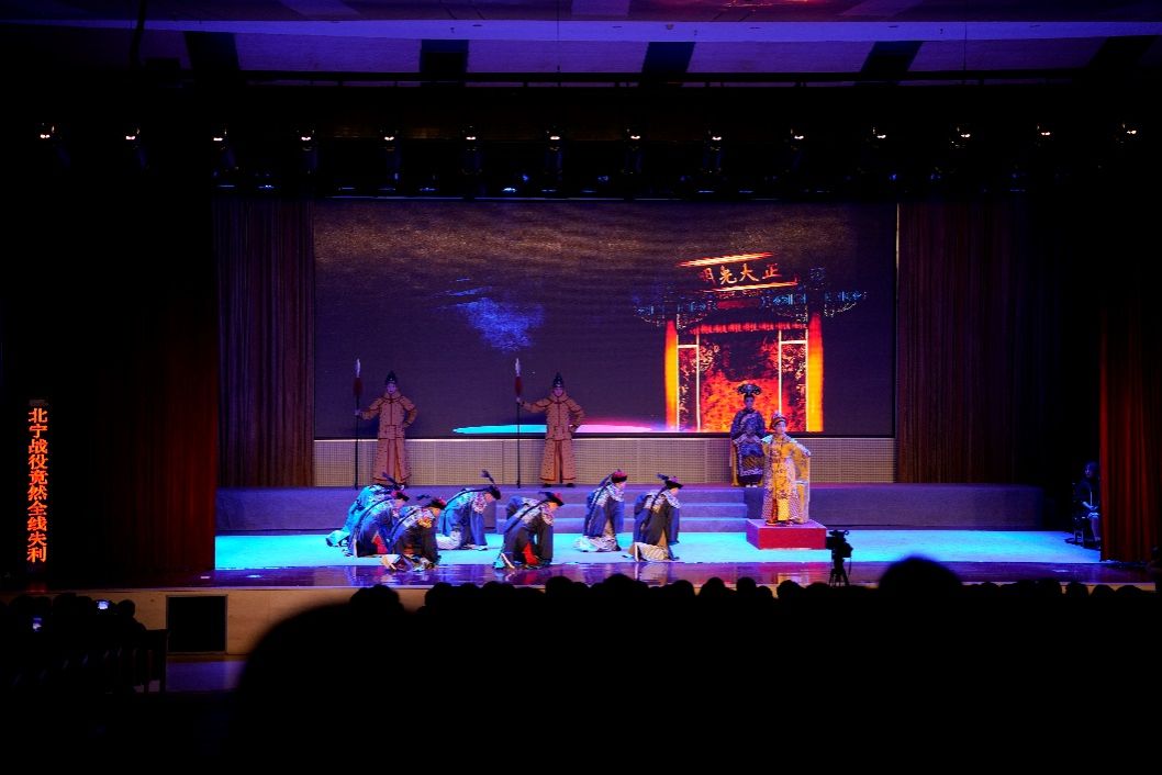 1122日晚,应肥西县委县政府的邀请,英国365集团组织70期分党校学员和团员60人前往肥西县派河剧场观看“情景党课”徽剧《刘铭传》。此次情景党课由肥西县委、肥西县人民政府主办,肥西县委县政府主要负责人、各乡镇(园区)、县直单位负责人,公检法、市场、城管系统工作人员,思政教师、高校员工、企业家代表、非公党组织和基层党代表、拥军先进典型代表,好人、道德模范和最美志愿者代表等共计将近800人一同观看演出。本次“情景党课”旨在深入学习贯彻习近平新时代中国特色社会主义思想和党的二十大精神,传承弘扬中华优秀传统文化。