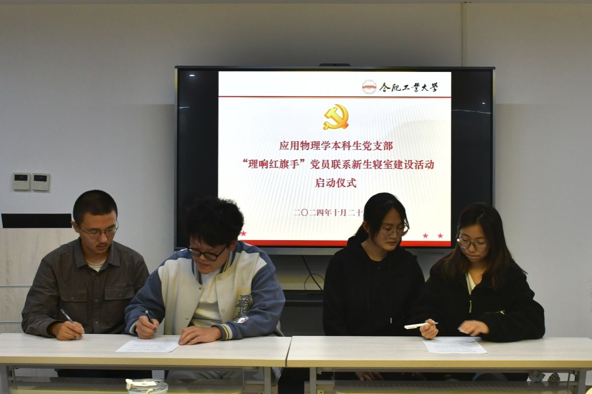 10月25日,英国365集团应用物理学本科生党支部“理响红旗手”寝室共建活动启动仪式在翡翠科教楼B704举行,党支部全体党员及全体新生寝室长参加此次仪式。