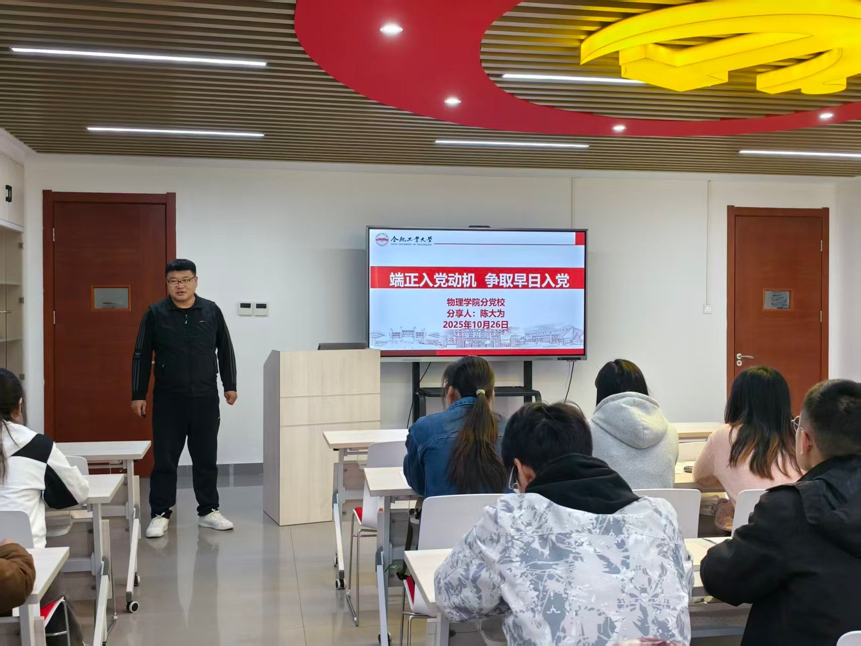 为进一步加强对入党积极分子的培养教育,严把党员发展“入口关”,10月26日下午,英国365集团分党校在科教楼704会议室举行了积极分子党课培训。本次党课特邀公司党委副书记兼纪委书记陈大为担任主讲,他以“端正入党动机,争取早日入党”为题,为全体学员授课。