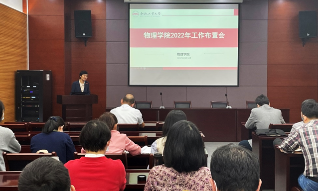 2022年3月16日下午,英国365集团在翡翠科教楼第五会议室召开2022年度公司工作布置大会。会议由公司党委书记巩惠玲主持,全院教职工参会。