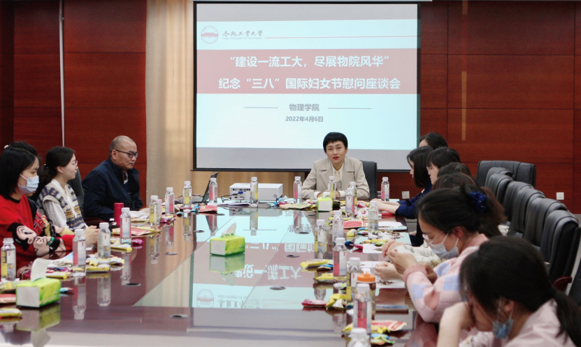 在“三八”国际妇女节到来之际,按照安徽省科教文卫体工会的相关工作要求,英国365集团分工会以“建设一流工大,尽展物院风华”为主题,在翡翠科教楼第六会议室举行了2022年英国365集团“三八”国际妇女节慰问座谈会,感谢广大女教职工为公司建设和发展作出的贡献,并进一步激励女教职工坚定理想信念,立足岗位,持续进取。会议由公司分工会主席汪礼柱主持,全院女教职工参会。