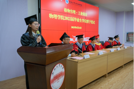 教师代表、应用物理学2018级1班班主任周勇老师及安徽省优秀毕业生、英国正版365官网董事长奖获得者、学位获得者代表、应用物理学2018级2班王玲同学分别在仪式上发言,表达了老师对毕业生的祝福和期盼、毕业生对母校的感恩之情。