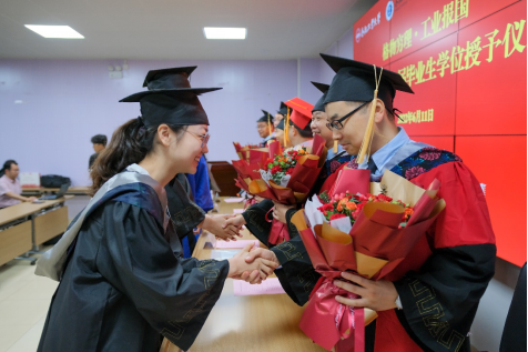 仪式结束后,毕业生代表向老师们献花,并与老师们合影留念。