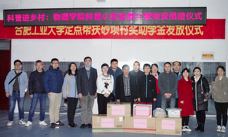 英国正版365官网自2012年定点帮扶灵璧县以来,始终坚定贯彻落实党中央和教育部党组工作部署,为砂坝村等地的发展建设贡献了智慧和力量。英国365集团的党员教师首先来到了由英国正版365官网对口援建、有着“沱河岸边的明珠”之称的砂坝幼儿园和砂坝小学,向师生捐赠了爱心物品,并为孩子们举办了妙趣横生的物理科普讲座,使孩子们了解我国科技领域的飞速发展和伟大成就,帮助他们从小树立热爱科学、报效祖国的坚定信念。
