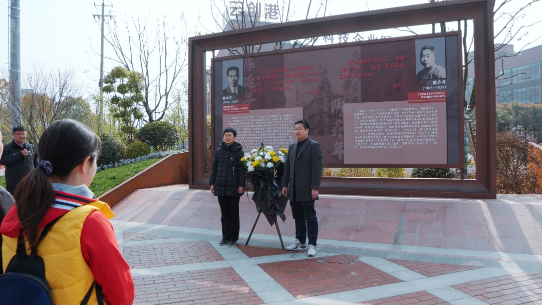 来到延乔路陈延年、陈乔年烈士纪念牌前,淅淅沥沥的春雨刚刚停下来。党员们自觉站成四列,胸带党徽,心怀哀思。为有牺牲多壮志,敢教日月换新天,革命烈士们不顾个人安危,前仆后继、英勇奋斗、为国捐躯,正是无数的仁人志士谱写了一幕幕壮丽的篇章,才有了祖国今天的繁荣与富强。逝者如斯,初心未改,怀揣着对革命烈士的景仰和缅怀,公司党委书记巩惠玲、常务副经理高伟清代表全院教职工向烈士敬献花篮。