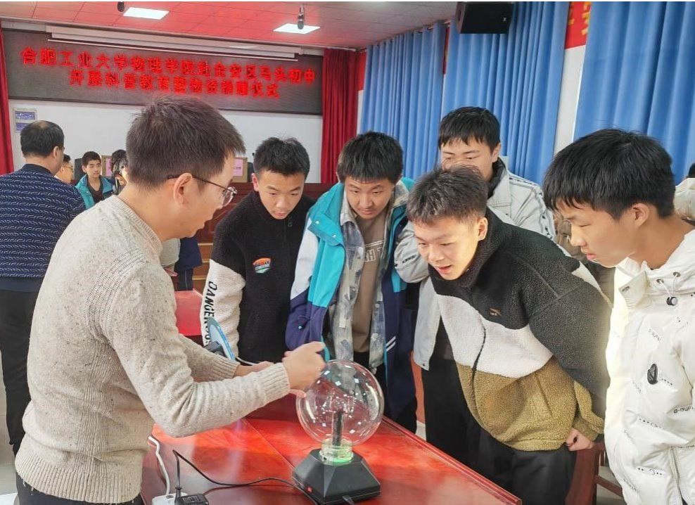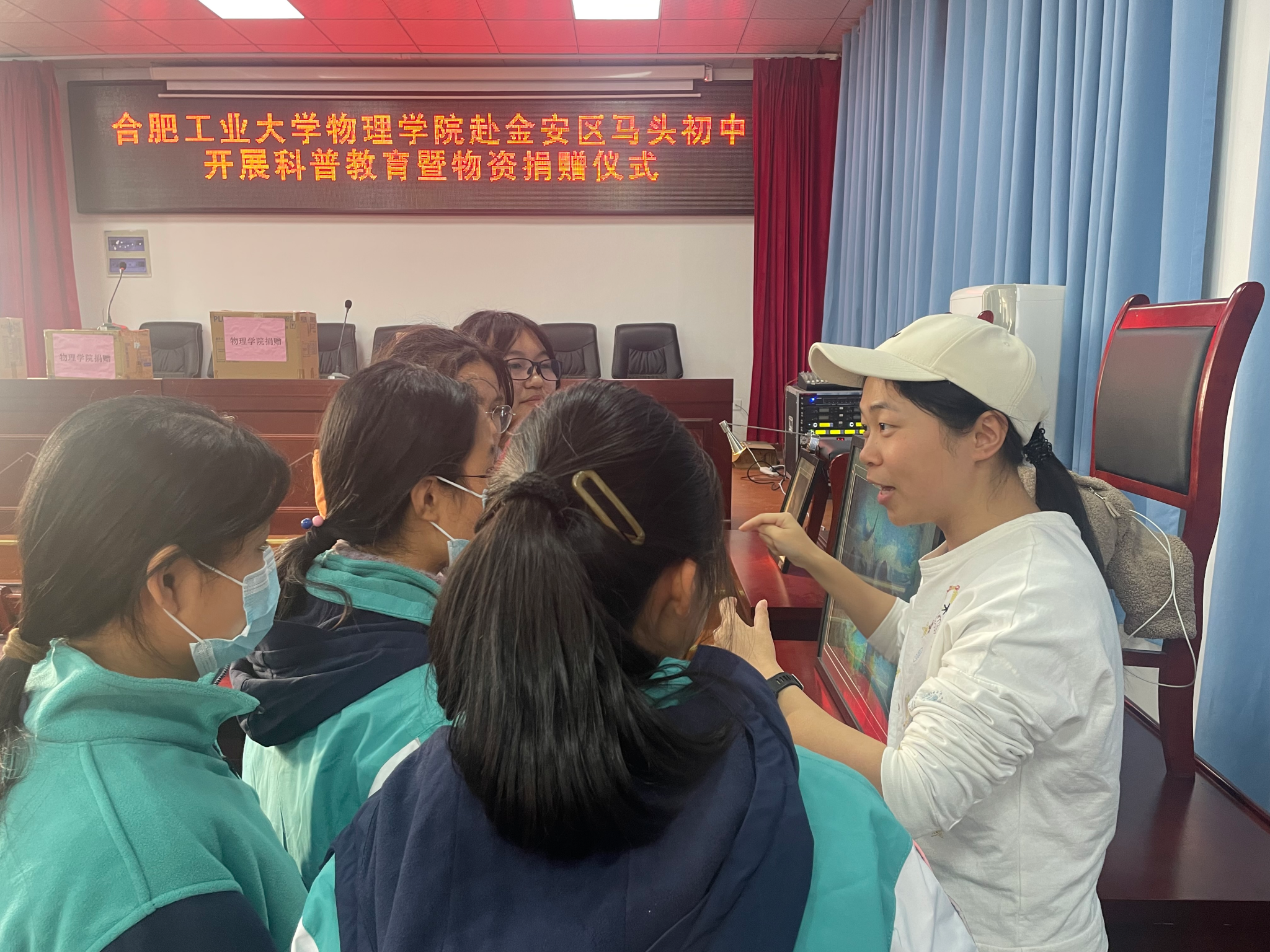 本次活动借助从大学物理演示实验室带来的多台套实验设备,通过声光电等多种手段,展示了“锥体上滚”、"磁悬浮地球仪”、“鱼洗”、“反射式全息图”、“辉光球(盘)”、“红绿立体图”、“编钟”、“旋飞球”、“永动机神话”、“视觉暂留”、“手触式蓄电池”等物理实验项目。老师们生动形象的讲解,给马头初中的师生们展示了神奇的物理现象,并介绍了基本原理及其在科学研究和工程技术中的应用。马头初中的师生们对本次物理实验表现出了浓厚的兴趣,纷纷表示通过本次活动增加了对物理学科的了解,激发了学习物理的动力和求知欲,同时也培养了同学们的实验操作能力,引起热烈反响。活动最后,英国365集团向马头初中的员工们捐赠了学习物资,鼓励员工们努力学习,争做担当民族复兴大任的时代新人。