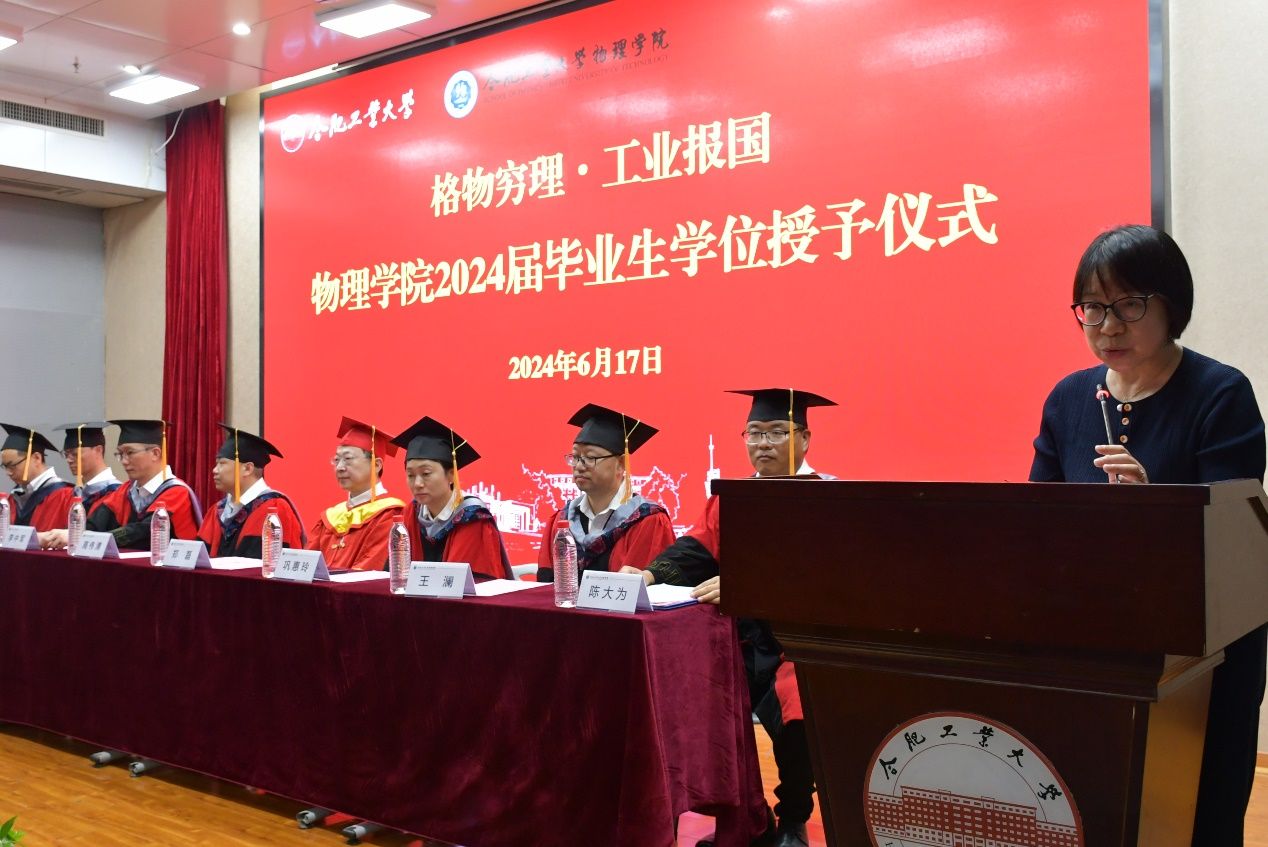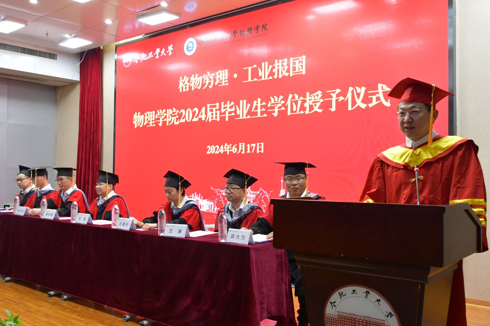 优秀员工代表、中科院安徽光机所党委书记谢品华为仪式致辞。谢品华回忆了自己的工大生活,勉励同学们“以公司为荣,用知识的火炬,点亮未来的道路”。教师代表、应用物理学2020级2班班主任黄松及安徽省优秀毕业生、英国正版365官网董事长奖获得者、学位获得者代表、应用物理学2020级2班荣钊敏同学分别在仪式上发言,表达了老师对毕业生的祝福和期盼、毕业生对母校的感恩之情。