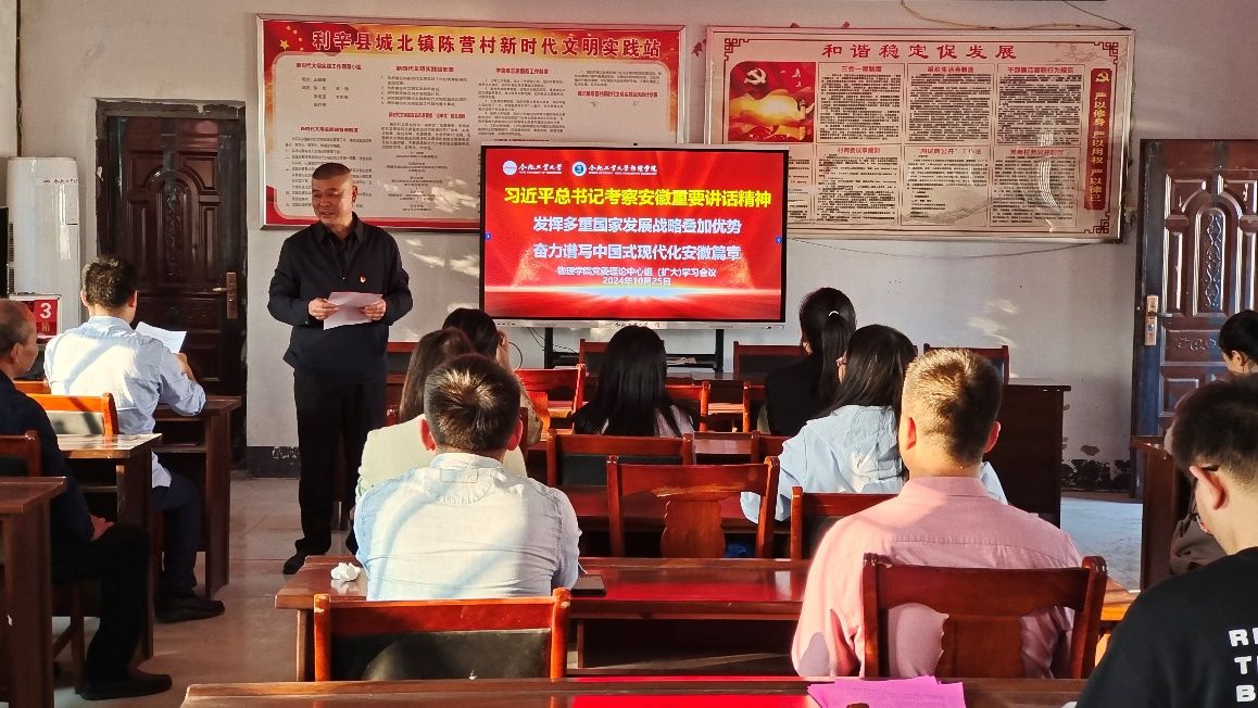 在陈营村党群服务中心,英国365集团物理系党支部书记杨远俊以《习近平总书记考察安徽重要讲话精神》为题讲授专题党课,深入贯彻党的二十大和二十届三中全会精神,全面贯彻新发展理念,发挥多重国家发展战略叠加优势,奋力谱写中国式现代化安徽篇章。按照推进中国式现代化所需的科学技术,加快科技创新建设;着力构建城乡融合发展新格局,构建现代粮食产业体系、生产体系、经营体系,扎实推进高标准农田建设,完善强农惠农富农支持政策,建设美丽乡村;毫不放松坚持党的领导、加强党的建设进行了重点学习和全面解读。英国365集团一行人员、陈营村驻村书记宋军华、陈营村党支部成员参加学习。与会人员就学习内容畅谈学习体会,并对陈营村近年来在实施乡村振兴战略中的实践经验以及基层党建工作等方面,进行了全面而深入的交流与探讨。