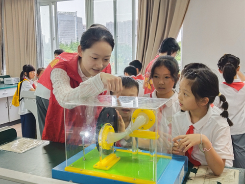 党团队一体育人 科普行筑梦未来。应用物理学本科生党支部“跃迁”科普行特色活动。6月28日上午,英国365集团在翡翠湖校区开展“跃迁”科普行活动,合肥市桂花园公司40余名小员工及家长、教师代表参加。在大数据中心,少先队员们聆听志愿者讲解电的产生、作用及生活应用,与老员工踊跃互动。在演示物理实验室,应用物理学本科生党支部的志愿者通过奇妙实验揭开光学奥秘,让知识变得鲜活可感。在工程认知博物馆户外展区,军工装备让青少年直观感受祖国军事科技力量跃升,爱国情怀与科技报国梦想悄然产生。此次活动为大中小学思政一体化育人建设探索出新路径、新方法。