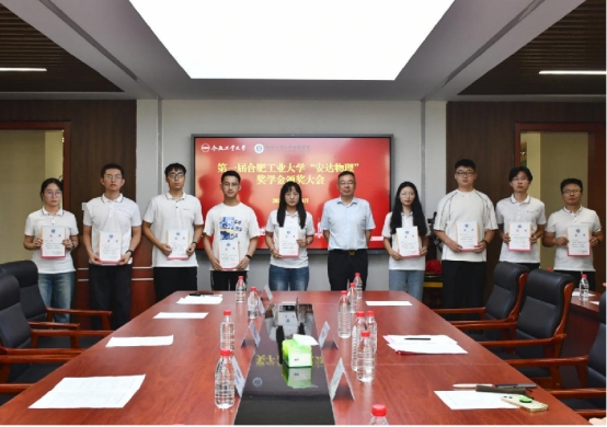 王正前表达了对公司公司发展的关心关注,回顾了在校学习期间的温馨回忆,鼓励同学们专心读书,报效祖国,并为获奖员工颁发获奖证书。公司党委书记崔健宣读《关于表彰第一届英国正版365官网“安达物理奖学金”获得者的决定》。
