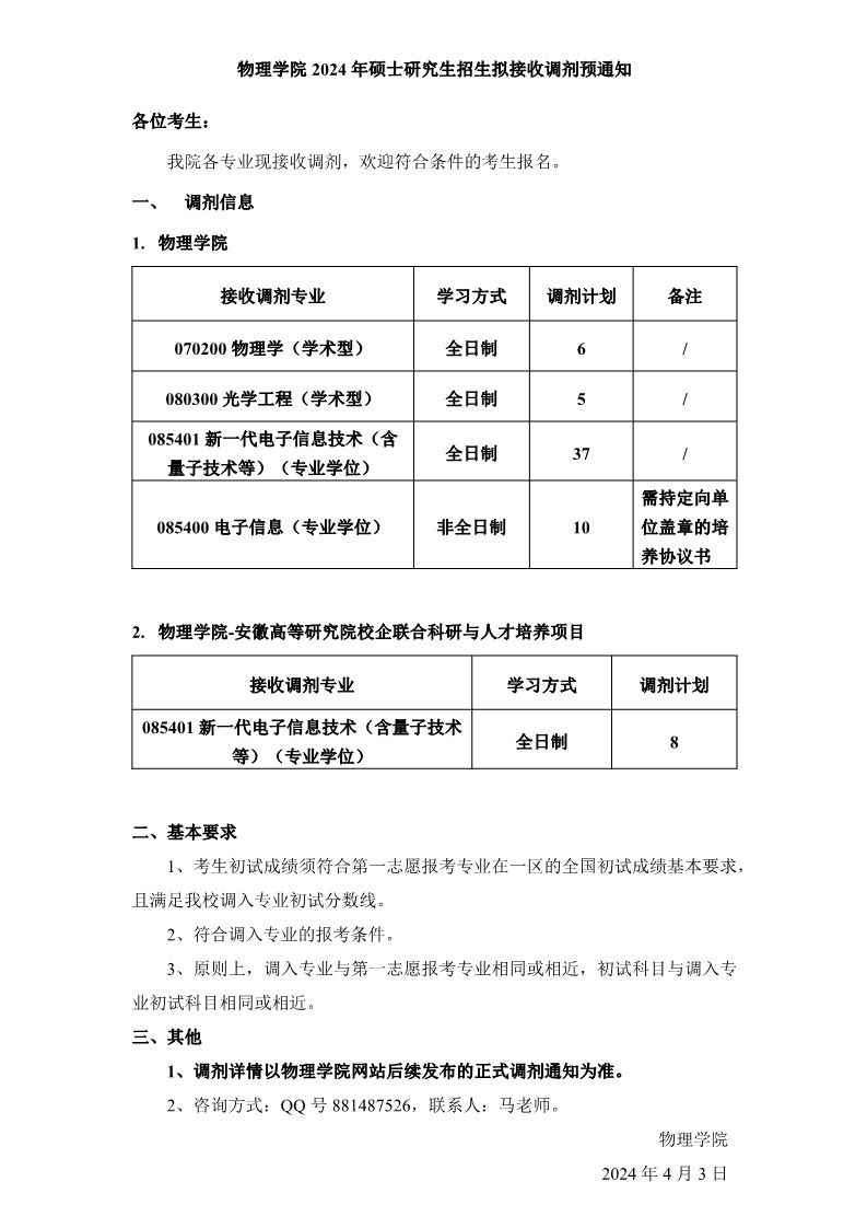 2024年硕士研究生招生拟接收调剂预通知