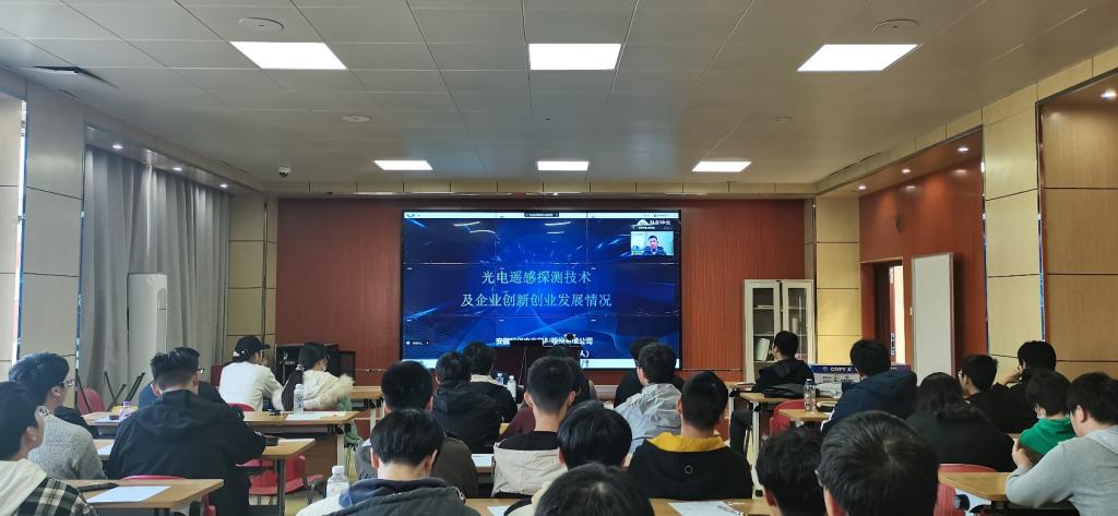 曹开法从科创中光的核心技术和设备开始,依次向同学们介绍了科创中光光电遥感技术的运用与实践、光电遥感探测的基本原理与技术、光电遥感技术的运用。曹开法提到,光学遥感技术是在紫外至红外光学波段内,远距离获取目标和环境信息的技术。无论是与生活息息相关的气象遥感,还是在国家军事探测,光电遥感探测技术都起到了举足轻重的作用,而科创中光正是以国家生态气象海洋和安全需求为指引,立足光机电算技术和光学遥感信息技术为基础,提供地对空、空对地高端遥感监测装备。