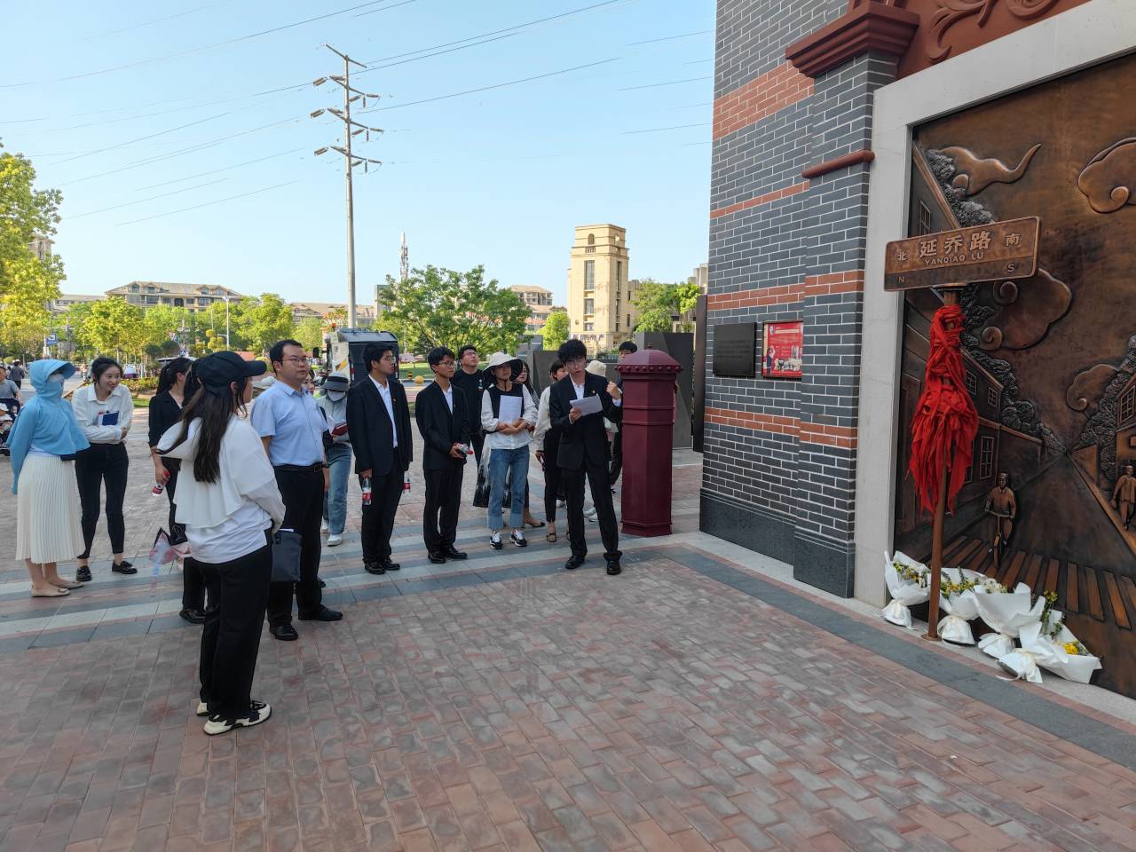 实战演练促成长。宣讲团成员一起走上延乔路,开展了一场接力讲解大演练,有的人站在盛世繁花景墙前落落大方、有的人来到延乔路纪念广场娓娓道来、有的人站在延乔版画前慷慨激昂,从站姿、走姿、手势、情感、语言等各方面向大家展现了一个宣讲员的专业素养。