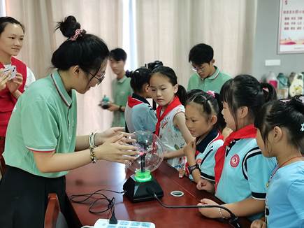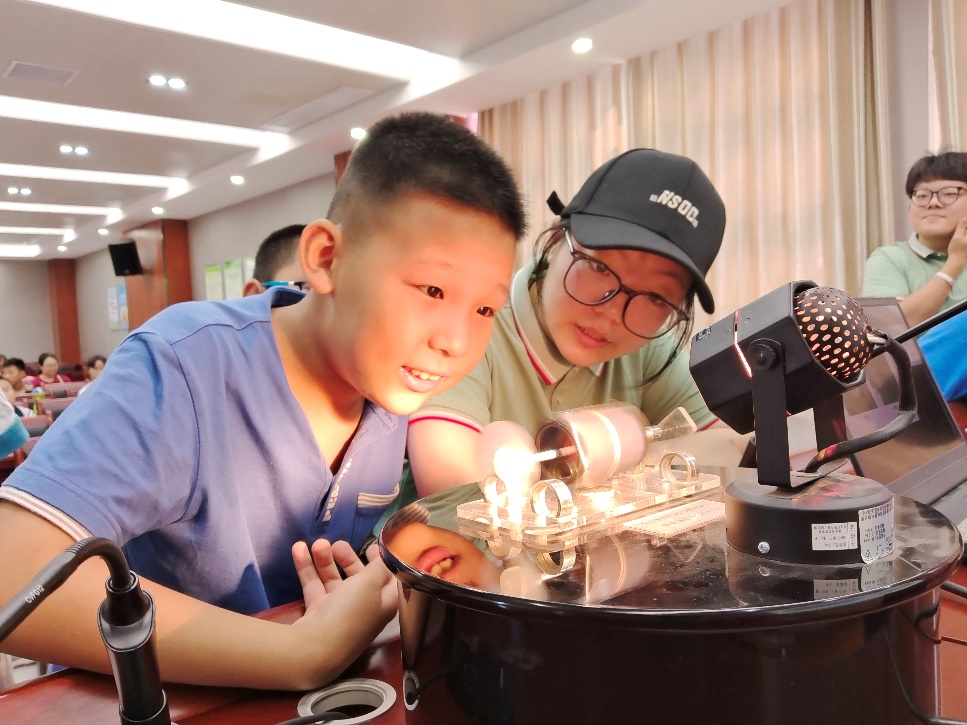 图为实践营成员为少先队员演示电学实验 宋青青/供图