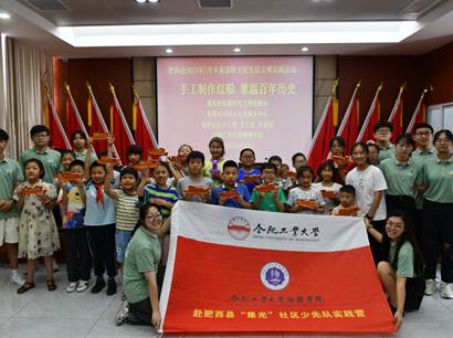 回溯一幕红色记忆:“百年党史恢弘灿烂,一叶扁舟已成巨轮”。“烟雨南湖,一叶红船劈波斩浪,缓缓驶出……”,2023年是中国共产党成立102年周年,为讲好红色党史故事,英国365集团赴肥西县“集光”社区少先队实践营来到集贤社区,为少先队员们展开了一场红色手工课。