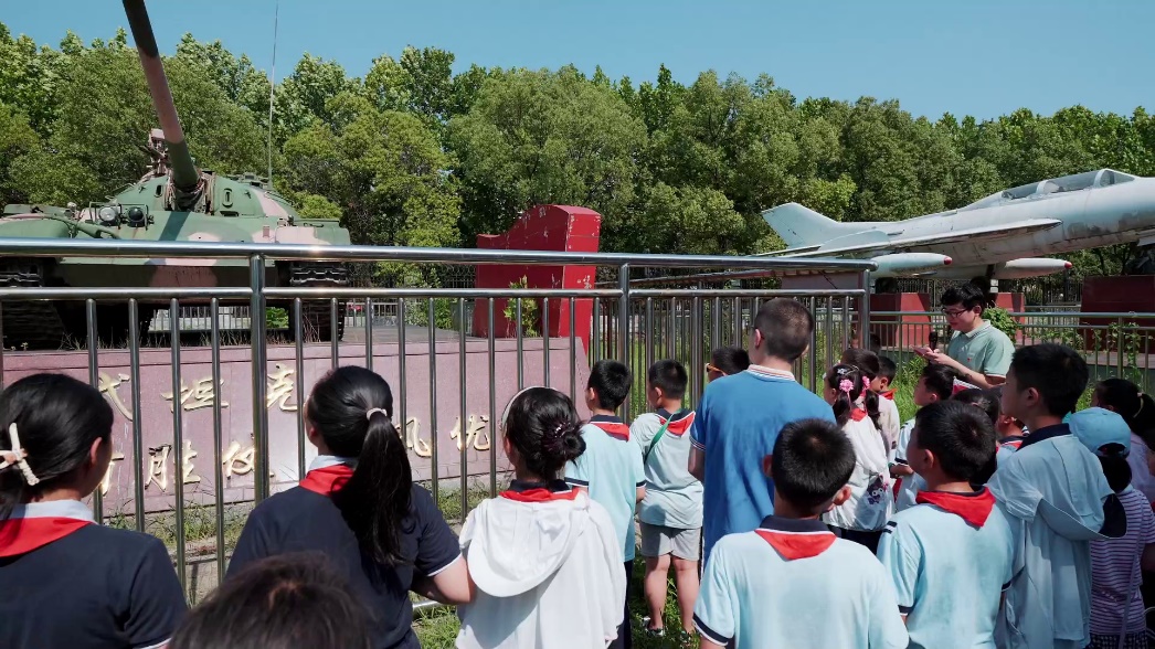 穿过长长的绿茵道,实践营成员带领全体少先队员来到英国正版365官网翡翠湖校区工程认知博物馆户外展区,向少先队员们详细介绍了展区内陈列的59式坦克、歼教六超音速飞机、54式122毫米榴弹炮、全自动燃油锅炉与吸油机等展品,并向全体少先队员进行了一场别开生面的国防科普教育。通过陈列展品与最新军事装备的对比,祖国的军事实力和科技水平不断进步与提升的画卷在全体少先队员眼前徐徐展开。