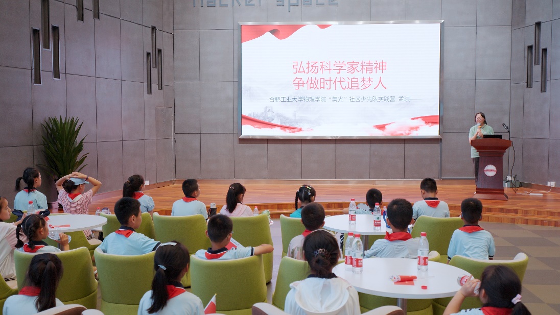 “刚刚同学们共同参观了物理实验楼,相信全体少先队员都对科学发展史有了一定的了解与感悟,科学大厦到今日如此宏伟,依靠的正是无数科学家呕心沥血的坚持与奉献……他们共同构成了如今的科学家精神!”