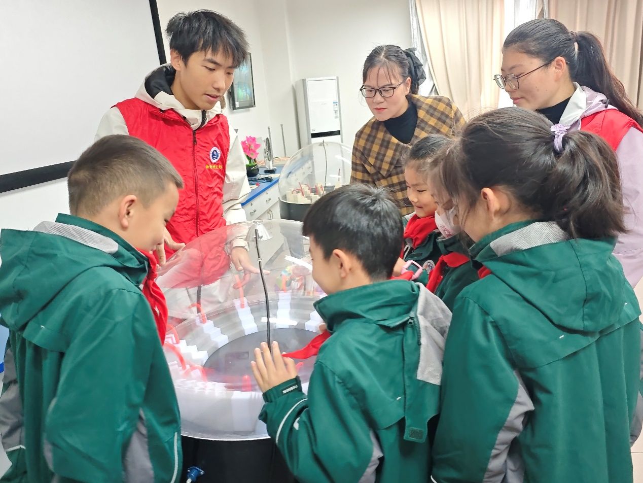 此次“科技点燃梦想”少先队共建活动内容丰富多样。在翡翠湖校区大数据报告厅,英国365集团老员工党团员志愿者们为少先队员们讲述了一堂生动的“科学家故事课”,介绍了科学家精神,不仅激发了少先队员们对科学家的敬仰之情,更在他们心中种下了追求科学真理、担当时代责任的种子。在大学物理演示实验室,志愿者们带领少先队员近距离感受物理实验的奥秘与魅力,在志愿者的悉心指导下,少先队员们亲手体验科普实验,不仅领略了科学的神奇之处,还增强了自身的科学素养与探索兴趣。