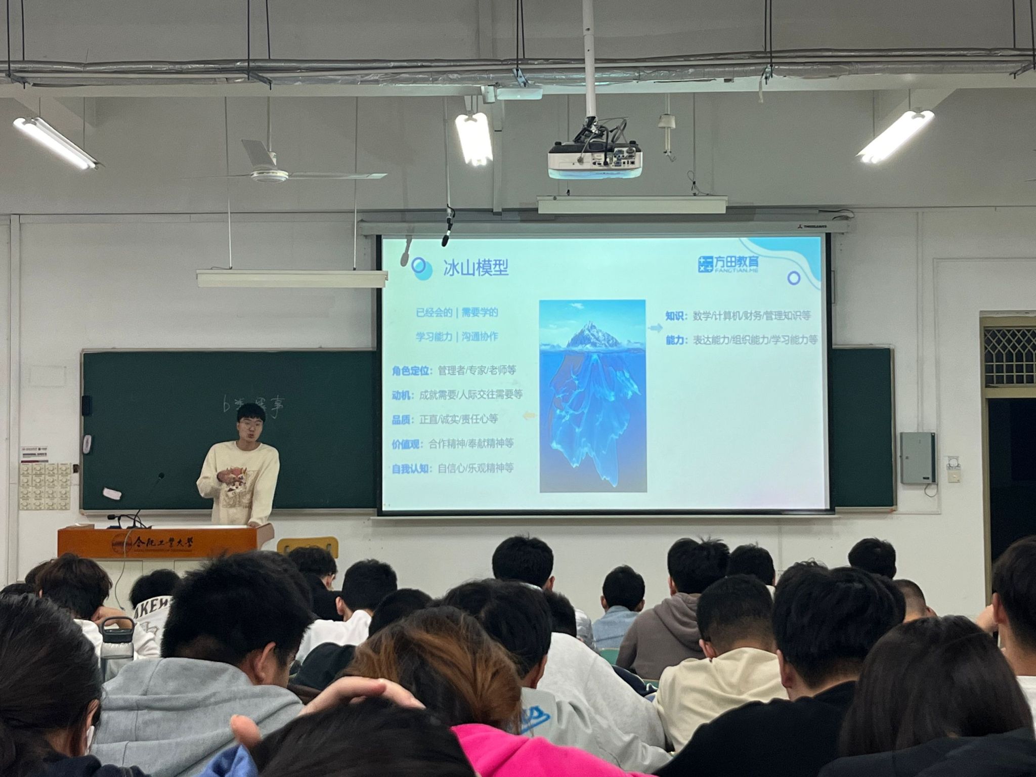 随后,陈浩向同学们深入浅出地阐述了职业规划对员工长远发展的重要性。他鼓励同学们深入挖掘自身兴趣、能力和价值观,以此为基础构建坚实的职业定位,为未来职业发展奠定坚实基础。陈浩还结合市场动态和行业趋势,指导同学们根据自身优势和兴趣精准定位适合自己的行业与岗位。此外,他还详细讲解了简历制作的方式方法,提供了大量实用且具体的建议。