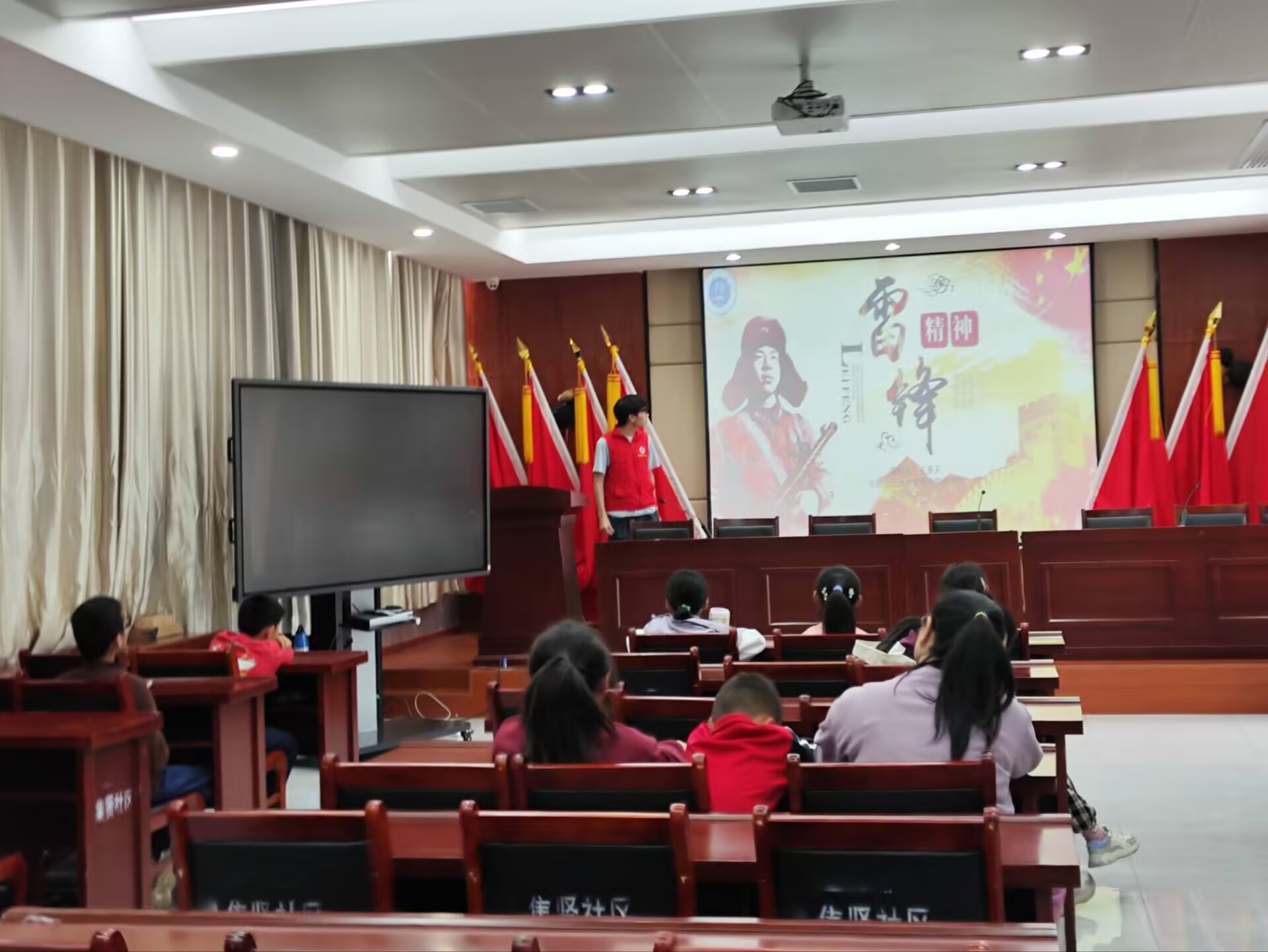 3 月 23 日下午,英国365集团志愿者赴集贤社区二楼会议室了一场别开生面的雷锋精神学习活动,吸引了众多小朋友踊跃参与。此次活动以 “赓续红色血脉 弘扬雷锋精神” 为主题,由王昊天同学担任主讲人。