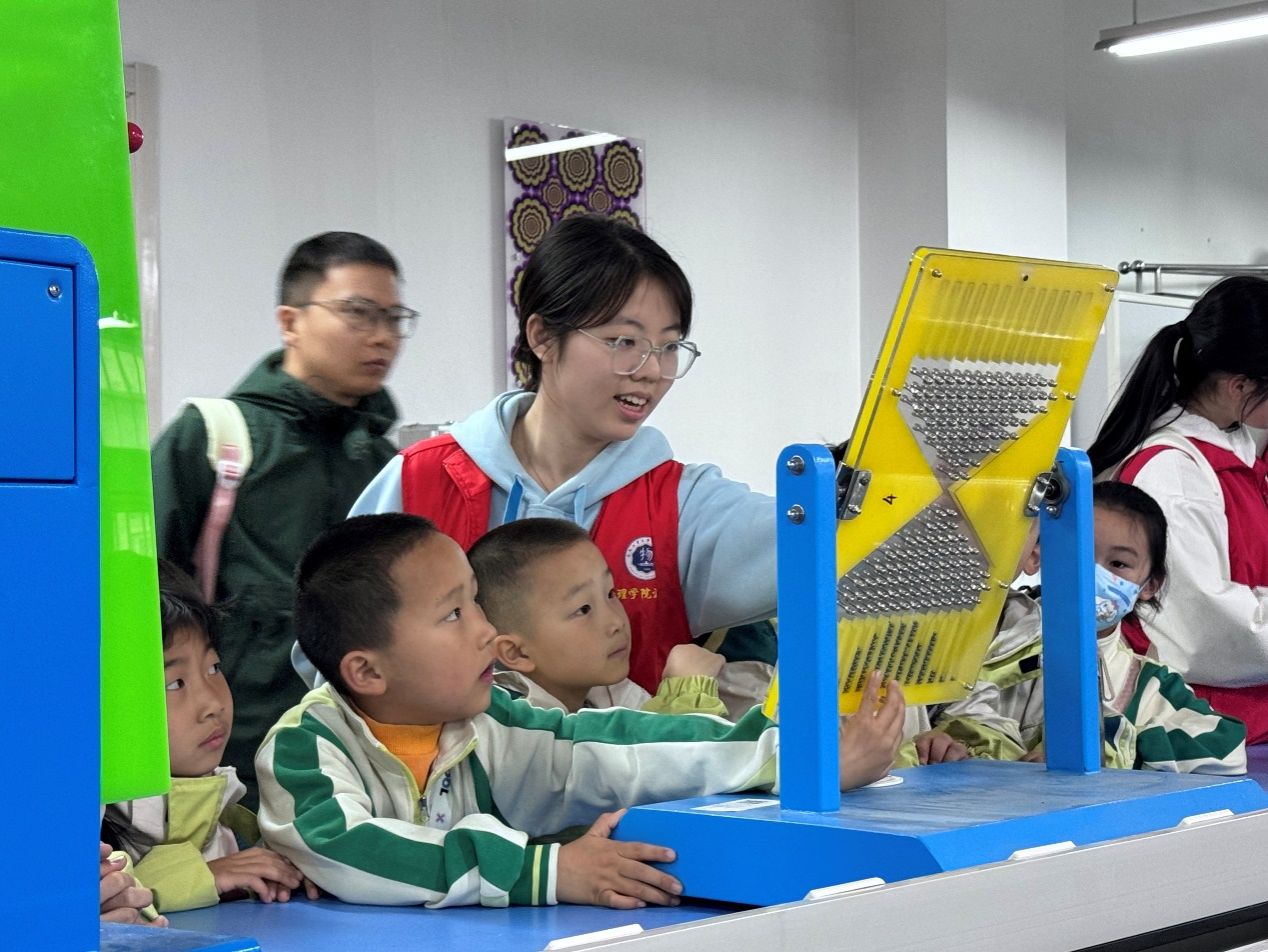 物理实验室奇妙之旅。在大学物理演示实验室,小朋友们纷纷变身“小小科学家”。志愿者通过鱼洗共振实验演示了机械振动与声波叠加原理,小朋友们亲手摩擦青铜器皿感受驻波现象;通过转动惯量挑战对比不同形状物体滚动速度,理解航天器姿态控制原理;通过法拉第笼体验,在静电屏蔽装置中感受电磁屏蔽的神奇。“声、光、热、力、电”的实验现象通过这场奇妙的课堂生动展示在全体小朋友眼前。小员工们从动手实践中学习,在探索思考中成长,学习到科学知识的同时,进一步加深了对科学家精神的理解与认同,从小树立工业报国的志向。