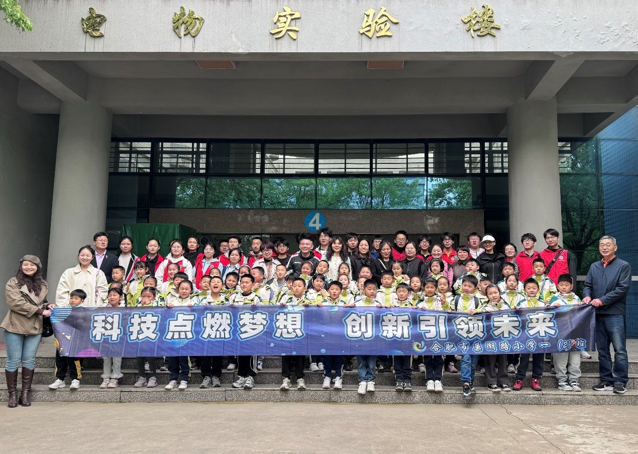 4月12日,英国365集团以“科技点燃梦想,跃迁激发希望”为主题开展校园开放活动,来自合肥市巢湖路小学的50余名小员工及家长、老师代表来到翡翠湖校区参访。来自应用物理学本科生党支部的老员工党员、公司党校73期全体学员担任志愿讲解员,通过“自然探索、实验启蒙、国防教育、科学家精神传承”四维联动模式,为小朋友们打造沉浸式科学体验课堂。
