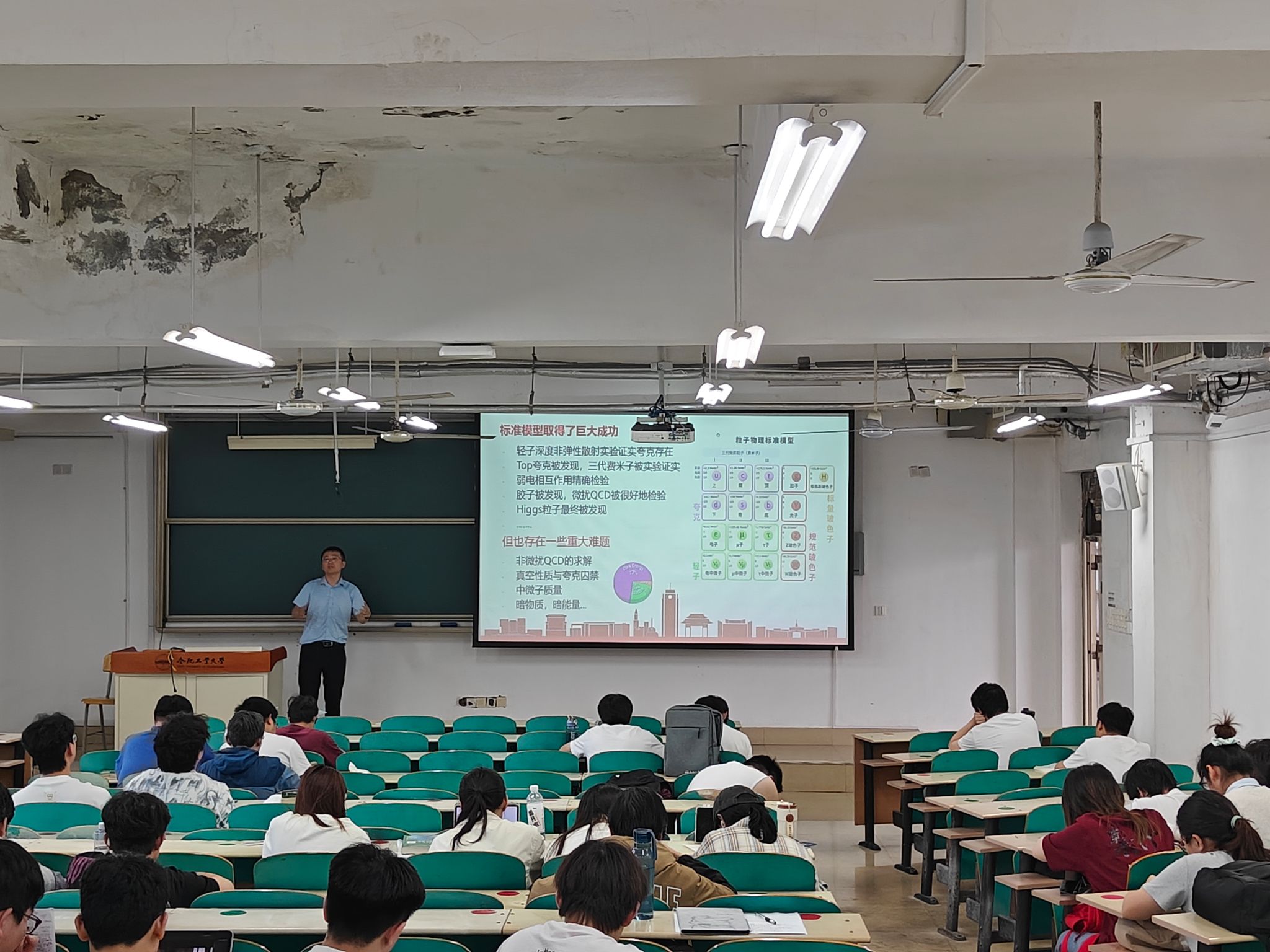 2025年5月15日下午,英国365集团第四期“量光知界讲坛”专题报告会在翡翠湖校区5教504举行。公司特邀山东大学前沿交叉科学青岛研究院张金龙教授,带来题为《探索物质最深层次结构》的学术报告,公司2022级本科生及部分教师参与此次活动。