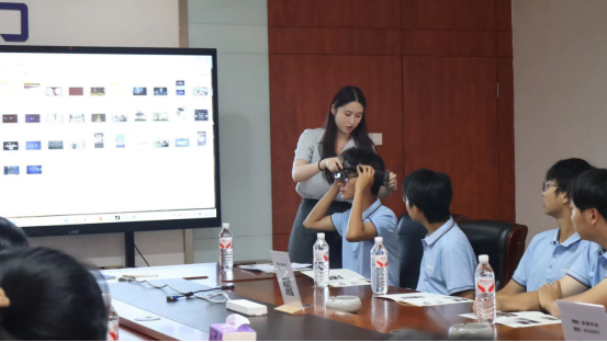 在产品体验环节,首镜团队为实践队员们戴上AR智能眼镜,震撼的视觉效果和精妙的技术设计,使得队员们惊叹不已,不少同学还凑近观察探寻其中的技术奥秘。
