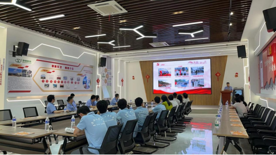 在辅导员陶候老师的带领下,团队成员在报告厅听取了华信党支部支委讲述公司党建业务双融双促的局面,深刻领悟了新时代企业的责任与担当。