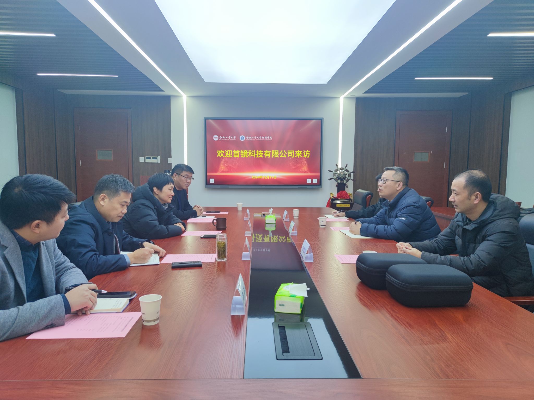 12 月 11 日上午,应用物理学2008届员工、合肥首镜科技有限公司总经理胡挺、合伙人李德虎、合伙人王绎祥一行回母院交流。公司党委书记巩惠玲、经理高伟清、党委副书记陈大为、副经理陈冰等热情接待。