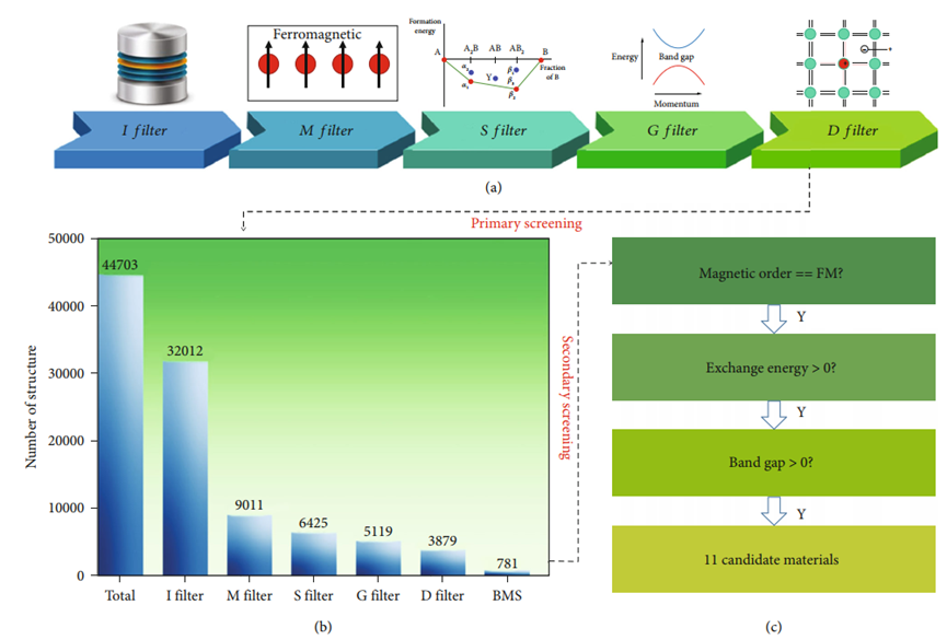 该成果以“High-Throughput Computational Screening for Bipolar Magnetic Semiconductors”为题,于2022年3月15日发表在《Research》期刊上。《Research》是中国科协与美国科学促进会于2018年共同创办的定位为国际化、高影响力、综合性科技期刊,是美国《Science》杂志自1880年创刊以来第一本合作期刊。文章第一单位为英国正版365官网,第一作者为物理系汪海迪副研究员,通讯作者为中国科学技术大学杨金龙院士和李星星副教授。