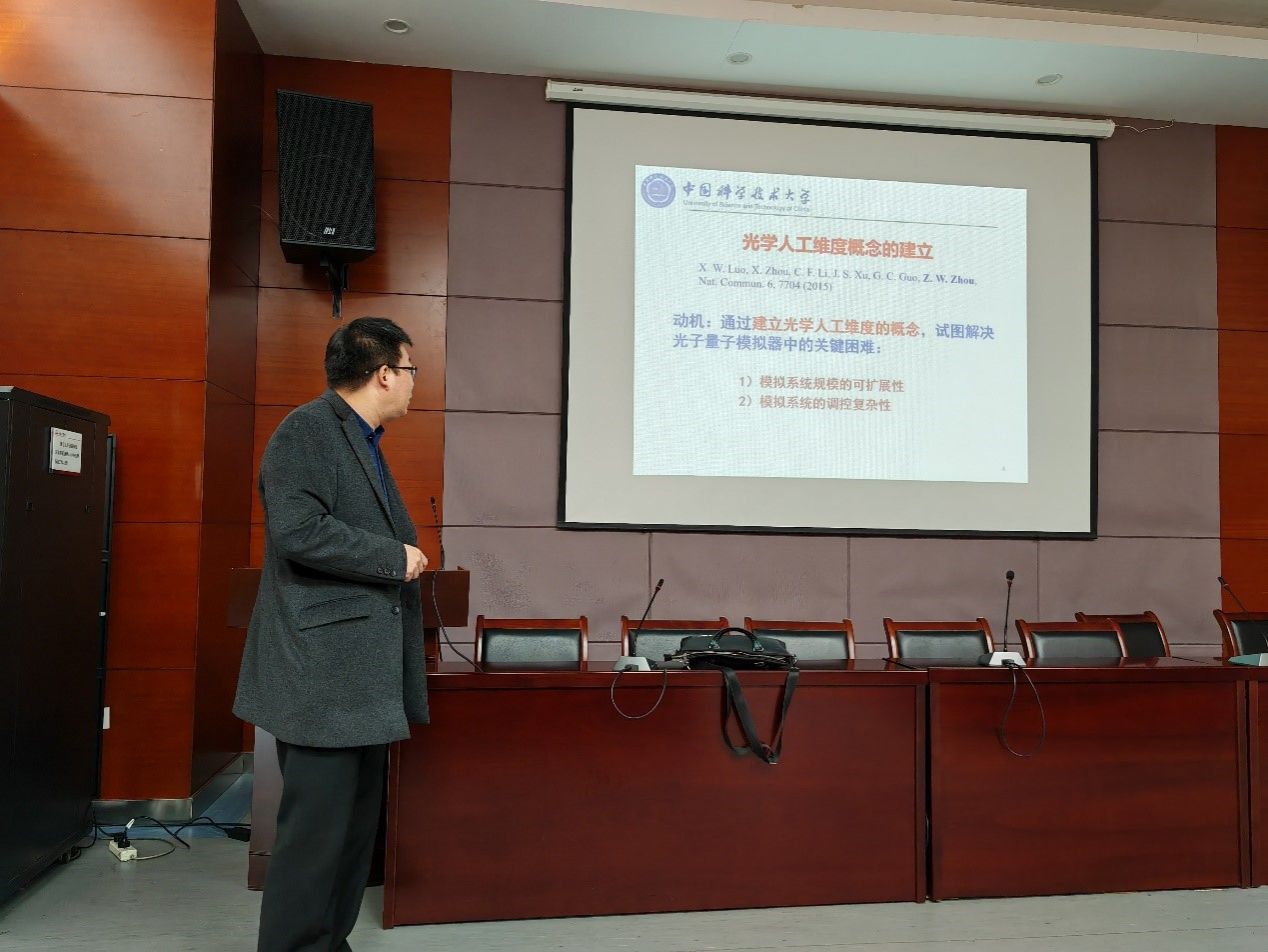 报告开始前,高伟清教授介绍了周正威教授个人简历。报告中,周正威教授首先介绍光的轨道角动量基本概念,并说明其在光通信、量子信息科学中有潜在的重要作用。随后,周正威教授讲述了光子轨道角动量在光学人工维度调控中的全新应用。其基本思想是设计一个谐振频率相同的简并光腔,支持携带不同轨道角动量的光子模式。通过耦合不同轨道角动量态的光子,该简并腔等效于一维耦合腔阵列。通过调控这些模式之间的耦合模拟在物理空间中粒子的隧穿。最后,周正威教授介绍了利用人工维度调控构建光学器件的构想以及近年来在该方向上的系列进展。与会师生针对讲座内容与周正威教授进行交流,现场讨论气氛热烈,激发了同学们科研创新的热情。高伟清教授对报告会进行总结,并期待周正威教授后期能与公司相关团队开展科研合作。