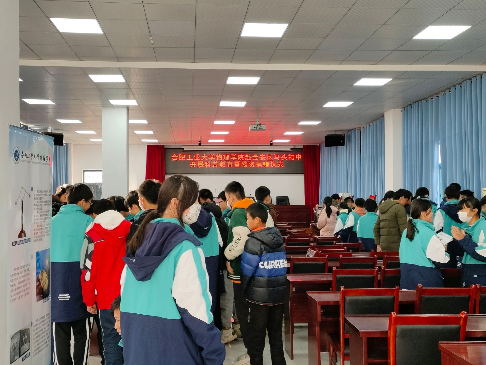 11月16日,在公司党委统一部署下,物理系党支部赴六安市金安区马头镇初级中学开展了“科学启智”公益科普活动,受到该校师生的热烈欢迎,三百多名师生参加了此次活动。